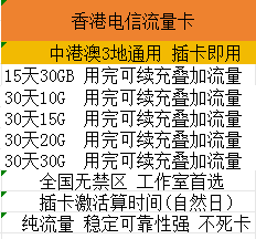 香港电信流量卡 纯手机流量卡无号码(可充值续费叠加流量)